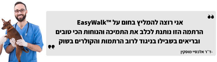 EasyWalk עוצבה במיוחד כדי לשמור על הבריאות של הכלב שלכם ולהפוך את הטיולים שלכם לקלילים וכיפיים