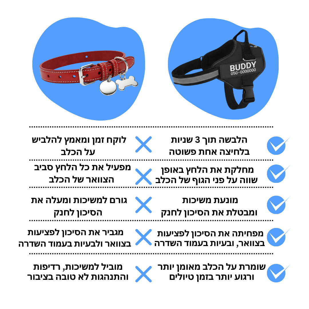 כל משיכה או התנגדות לקולר עלולה לפגוע בקנה הנשימה,בצוואר,ובגב של הכלב שלנו